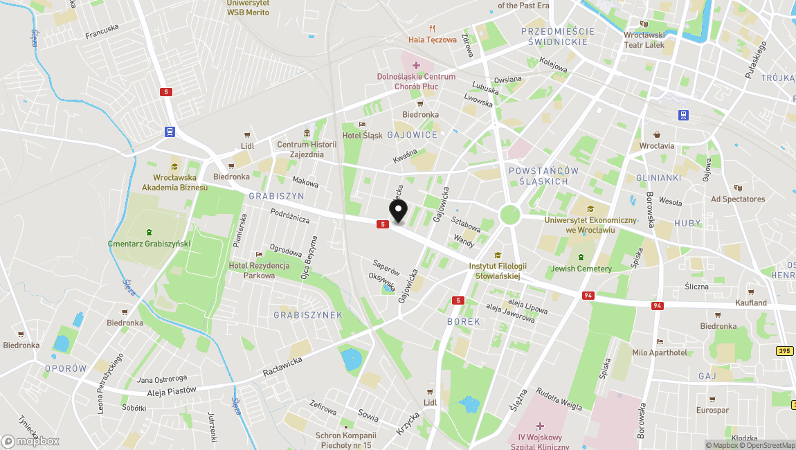 - Uniwersytet Ekonomiczny - 8 minut autem, 15 minut komunikacją lub 18 minut piechotą
