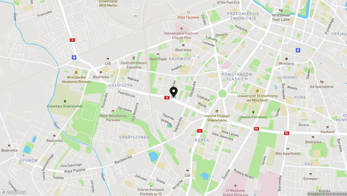 - Dworzec Główny - 10 minut autem lub 30 minut piechotą