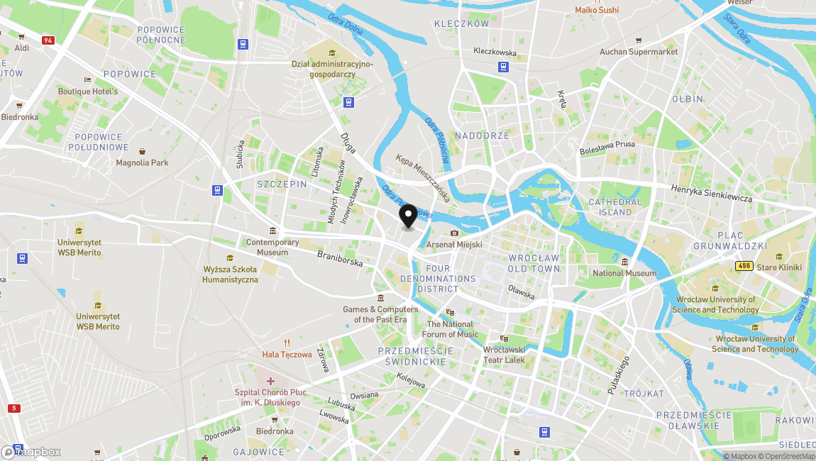 Apartament zlokalizowany jest w samym centrum Wrocławia, tuż przy Odrze. Z budynku można bezpośrednio wyjść na bulwar nad rzeką, a spacerem dojść na Stare Miasto. Lokalizacja zapewnia doskonałe skomunikowanie z całym miastem.