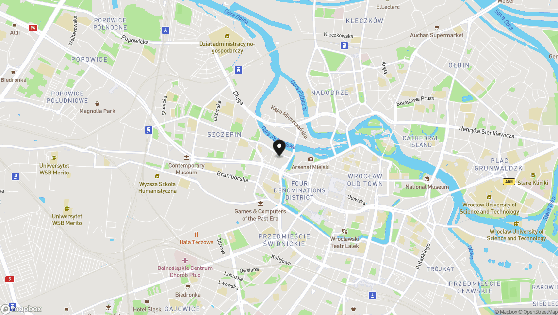 Apartament zlokalizowany jest w samym centrum Wrocławia, tuż przy Odrze. Z budynku można bezpośrednio wyjść na bulwar nad rzeką, a spacerem dojść na Stare Miasto. Lokalizacja zapewnia doskonałe skomunikowanie z całym miastem.