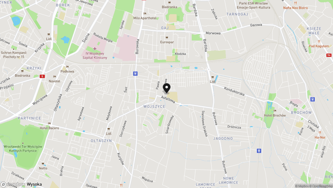 Nieruchomość znajduje się przy ulicy Granitowej, obręb Wojszyce. Wojszyce to wyjątkowa enklawa gwarantująca ciszę, spokój i wypoczynek, bogatą infrastrukturę oraz dogodne połączenia: szybki dojazd do biznesowego i usługowego centrum Krzyków i Wrocławia, bliskość trasy wylotowej na autostradę i obwodnicę.