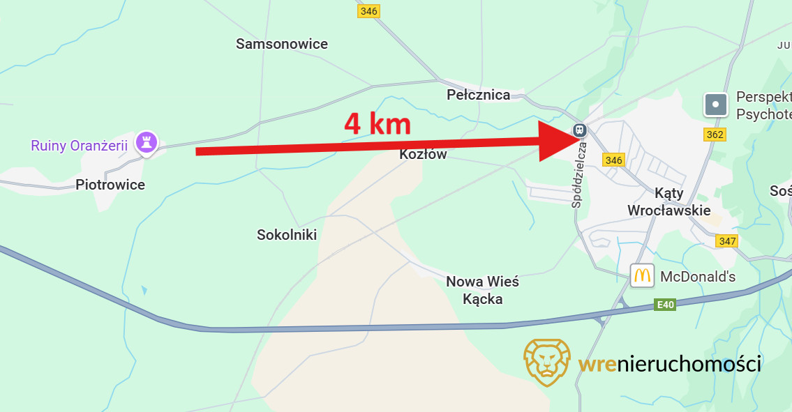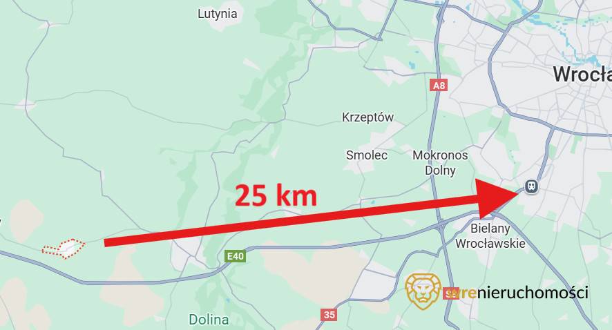 - szybki dojazd do Wrocławia — ok. 6 km do granicy miasta, 20 km do Rynku