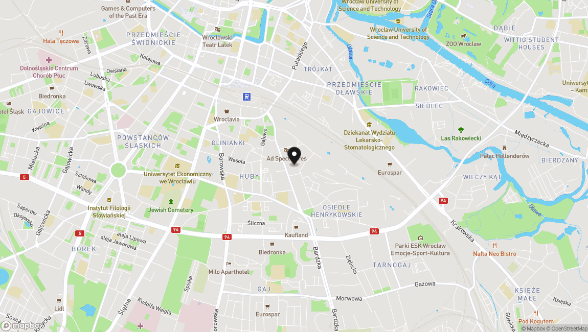 Nieruchomość położona jest w jednej z najlepiej skomunikowanych części Wrocławia. W bezpośrednim sąsiedztwie znajdują się liczne sklepy (Lidl, Biedronka), punkty usługowe oraz restauracje. W odległości krótkiego spaceru dostępny jest Aquapark oraz tereny rekreacyjne. Lokalizacja zapewnia szybki dojazd do centrum oraz dogodny dostęp do komunikacji miejskiej. Dodatkowym atutem jest bliskość Dworca Głównego oraz galerii Wroclavia (ok. 800-1000 m).