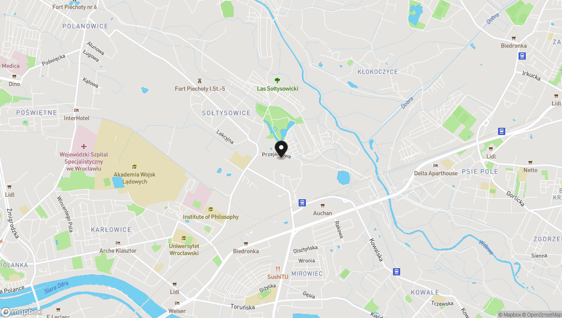 Mieszkanie znajduje się w dzielnicy Psie Pole, w okolicy licznych udogodnień:
