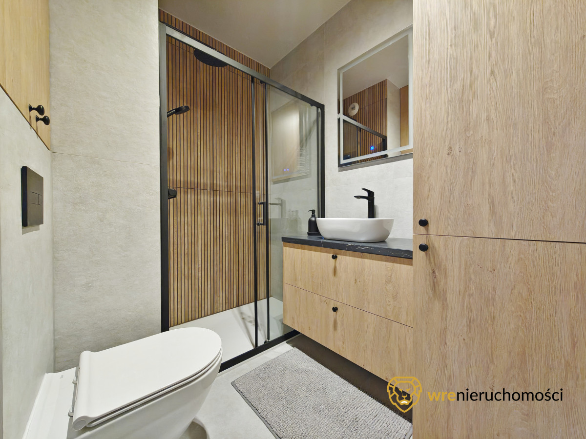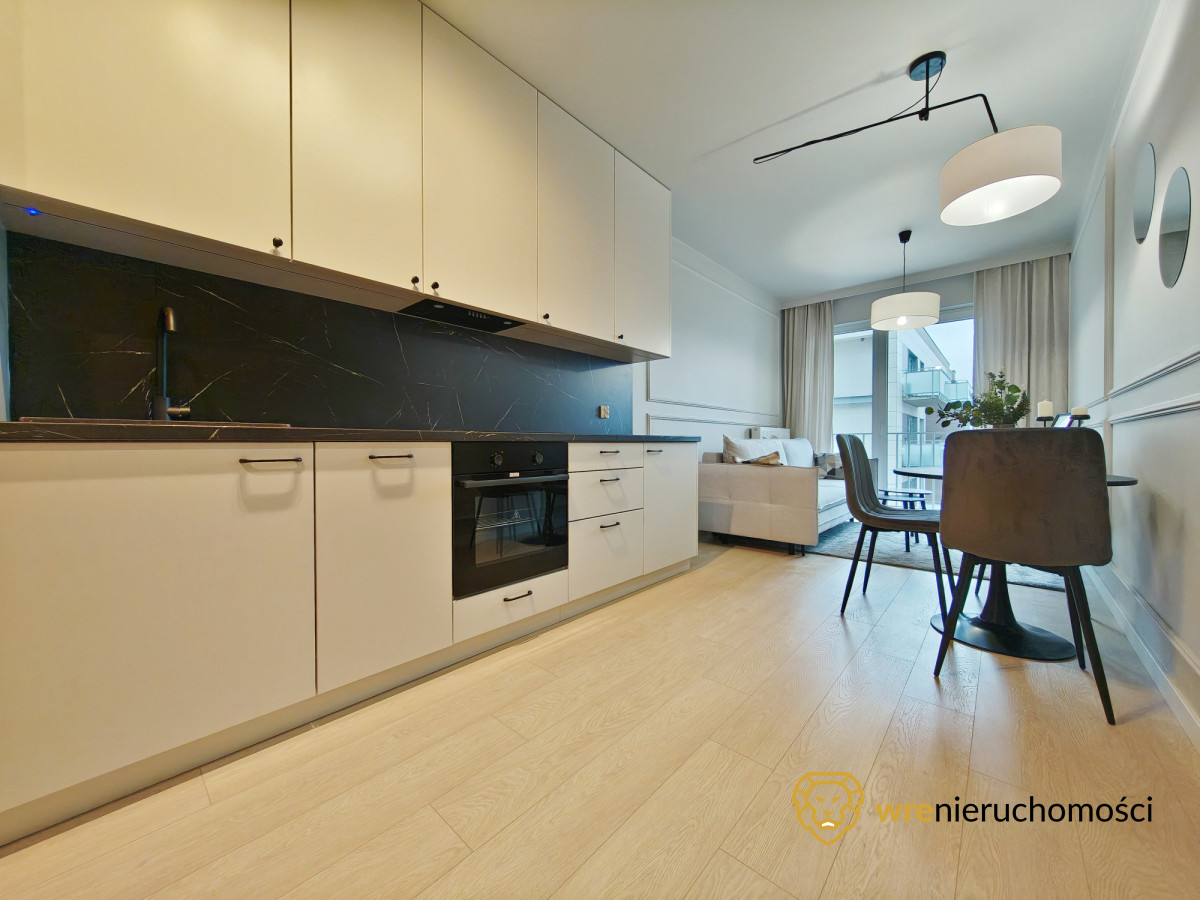 Mieszkanie jest gotowe do wprowadzenia lub wynajmu. Lokal urządzony wysokiej jakości meblami. W pełni wyposażone w AGD tj. TV, lodówka, zmywarka, klimatyzacja, czajnik, a do tego w mieszkaniu mamy komplet pościeli, talerzy itp. tak by nowy nabywca mógł od razu się wprowadzić lub oddać lokal na wynajem krótkoterminowy bądź długoterminowy.