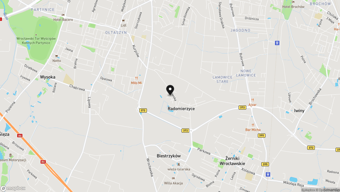 Nieruchomość położona w Radomierzycach, w spokojnym miejscu.. Niespełna 5 minut do granic Wrocławia. Do centrum Wrocławia dojedziemy w około 25-30 minut.