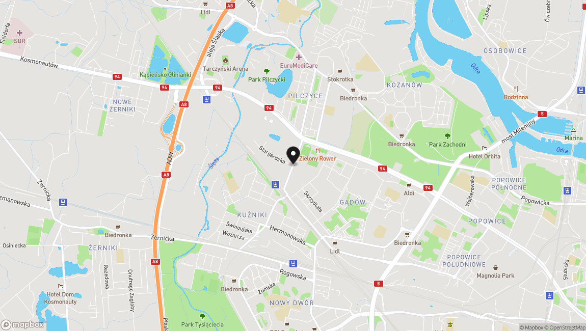 Lokalizacja (Wrocław - okolice Stadionu Miejskiego):