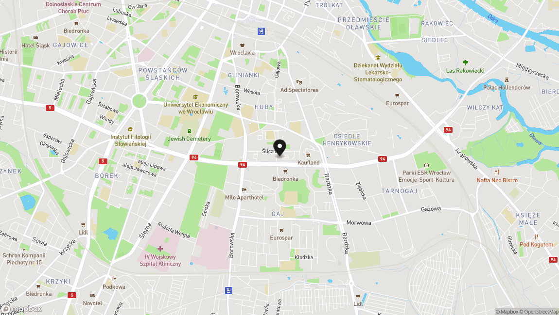 Ul. Armii Krajowej to świetnie skomunikowana część Wrocławia, zapewniająca szybki dojazd zarówno do centrum miasta, jak i do innych dzielnic. W bezpośredniej okolicy znajdują się: