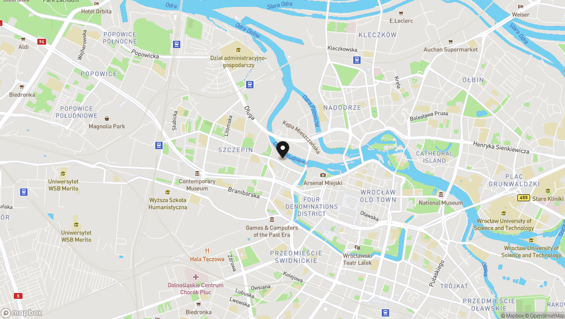 Lokalizacja to centrum Wrocławia, mieszkanie położone bezpośrednio od strony Odry, z budynku można wyjść prosto na bulwar nad rzeką i spacerem przejść na Stare Miasto, lub skomunikować się sprawnie z każdym rejonem Wrocławia.