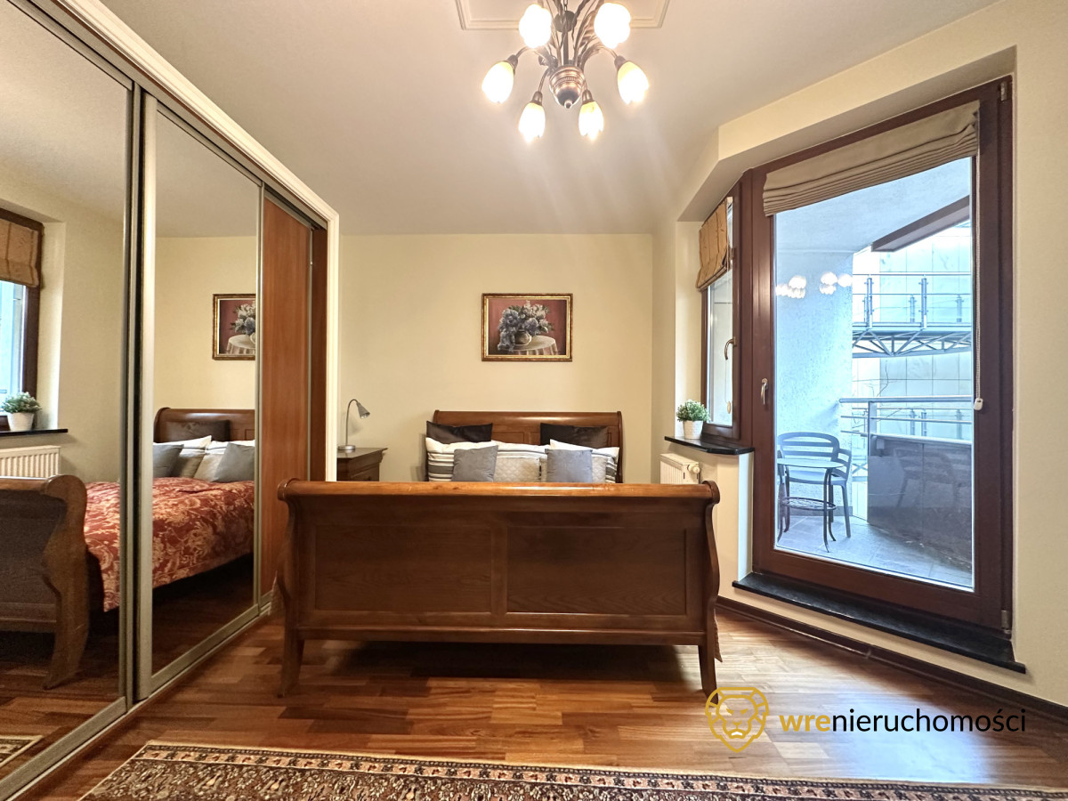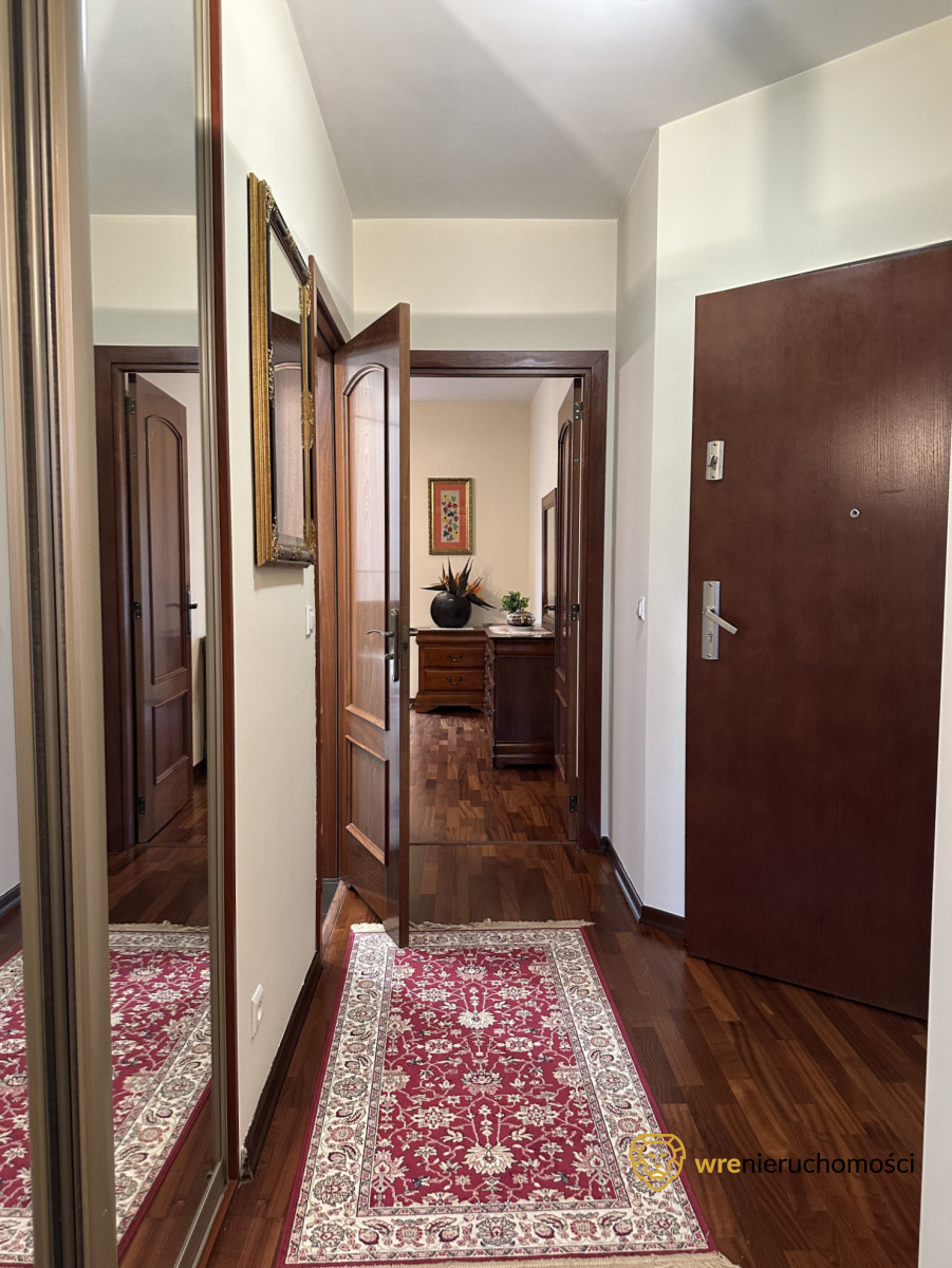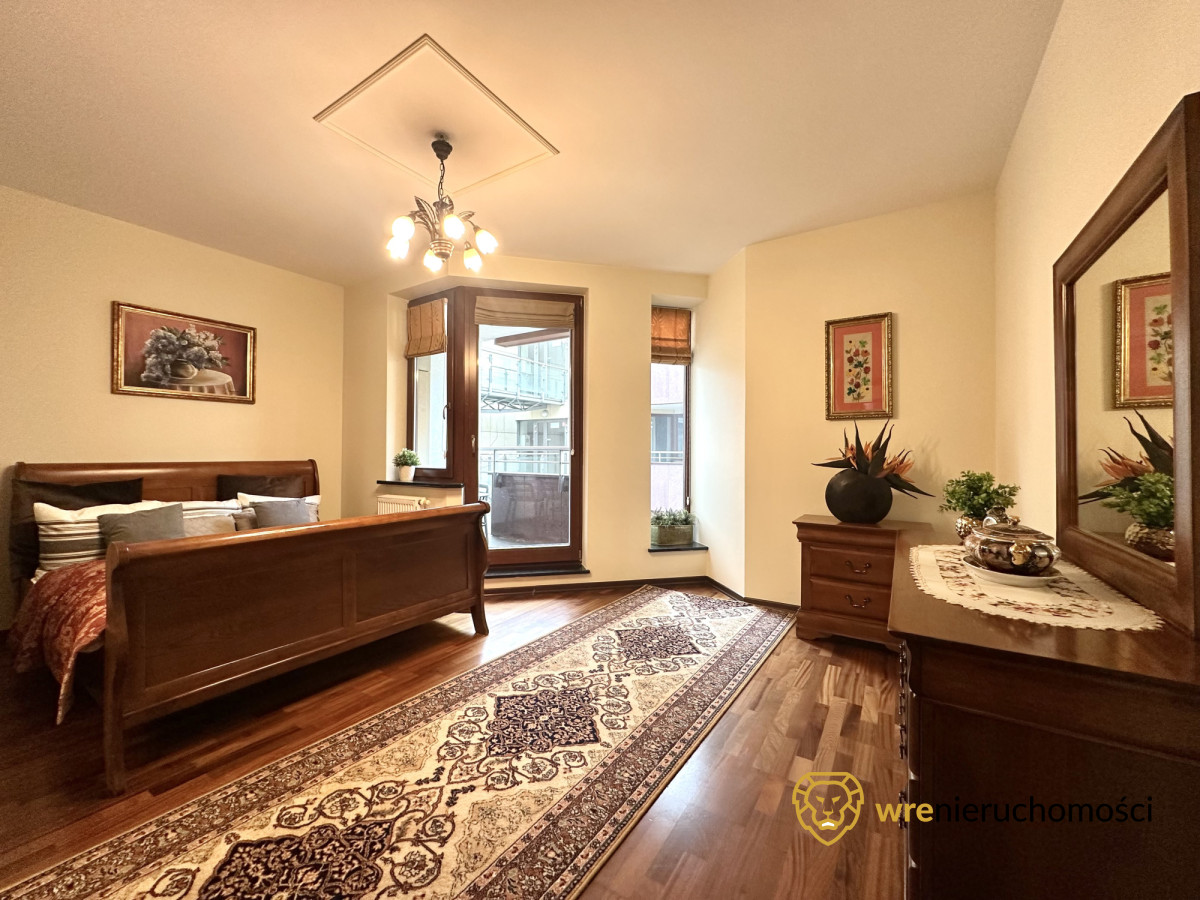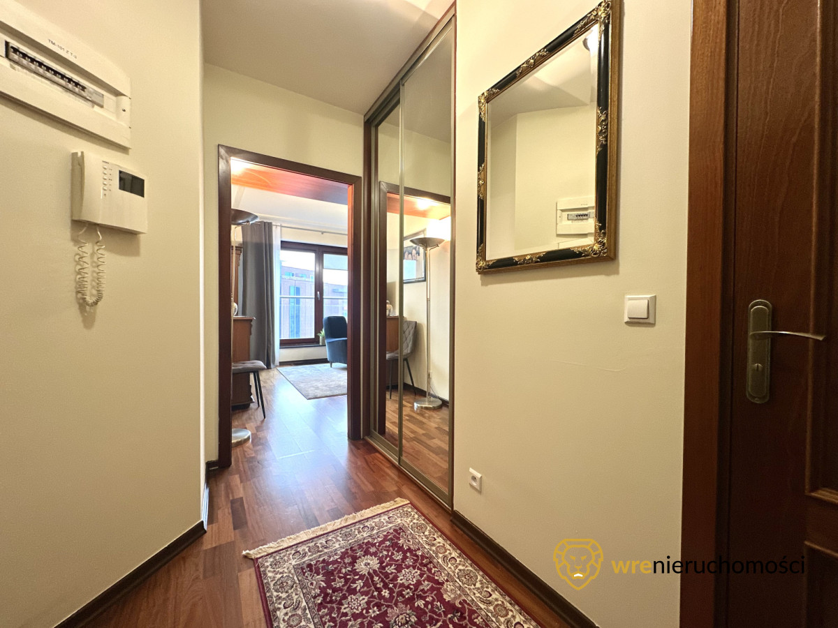 Apartament jest w pełni umeblowany i wyposażony, a liczne zabudowy wykonane na wymiar gwarantują dużą funkcjonalność i wygodę użytkowania.