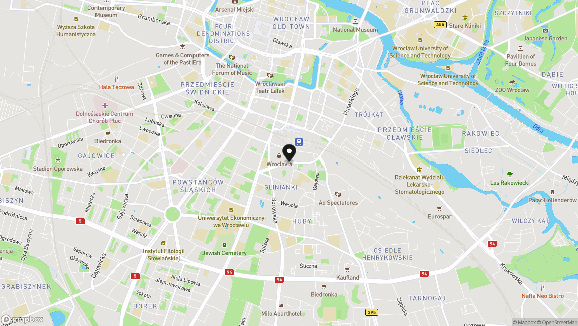 Centrum Wrocławia, obok Galerii Wroclavia, w bezpośrednim sąsiedztwie Dworca PKP i PKS